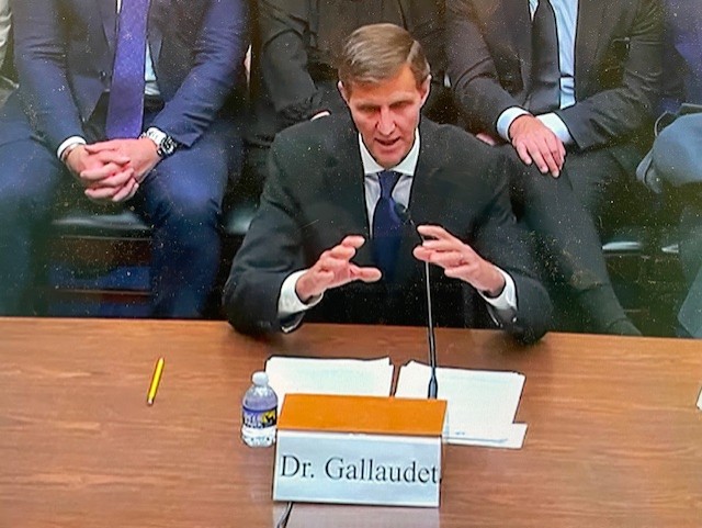 A screen shot of Gallaudet testifying before a joint hearing of the Committee on Oversight and Accountability.