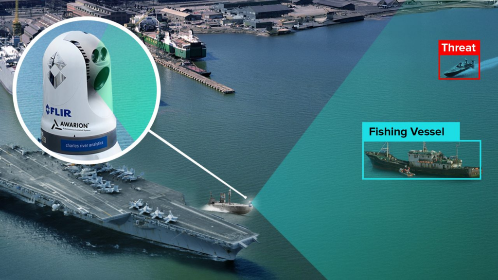 PAVE builds on Awarion®, Charles River Analytics’ artificial intelligence (AI)–powered autonomous lookout system, which complements and supports human watchstanders and marine radar systems on the open seas. “Awarion detects, analyzes, and reports on the presence of whales, vessels, and other maritime objects in the open ocean, but we can adapt it to perform well in more crowded harbor scenarios,” says Ross Eaton, Principal Scientist, Director of Marine Systems, and Awarion product lead at Charles River.