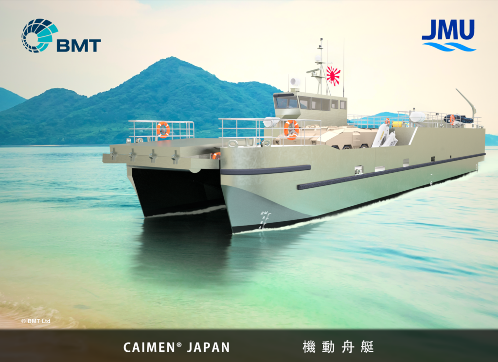 The groundbreaking program showcases close cooperation between JMU and BMT, with the Caimen ® Landing Craft design provided by the BMT team in the UK, and the production design and construction of the vessels carried out at JMU’s facilities in Japan.