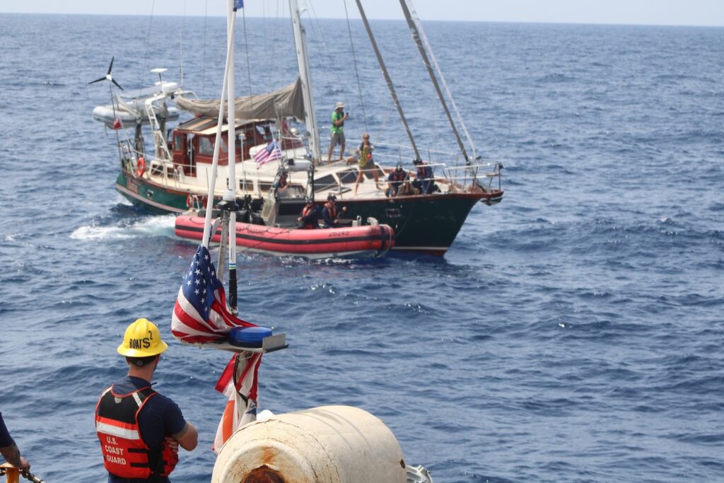 On May 17, the crew of Forward rescued two people and their disabled 60-foot sailboat nearly 90 miles offshore of Charleston, South Carolina. Forward’s crew towed the sailboat to coastal waters, where a Station Charleston boat crew and a commercial salvage vessel took over and safely transported the two sailors and their boat to shore. No injuries were reported.