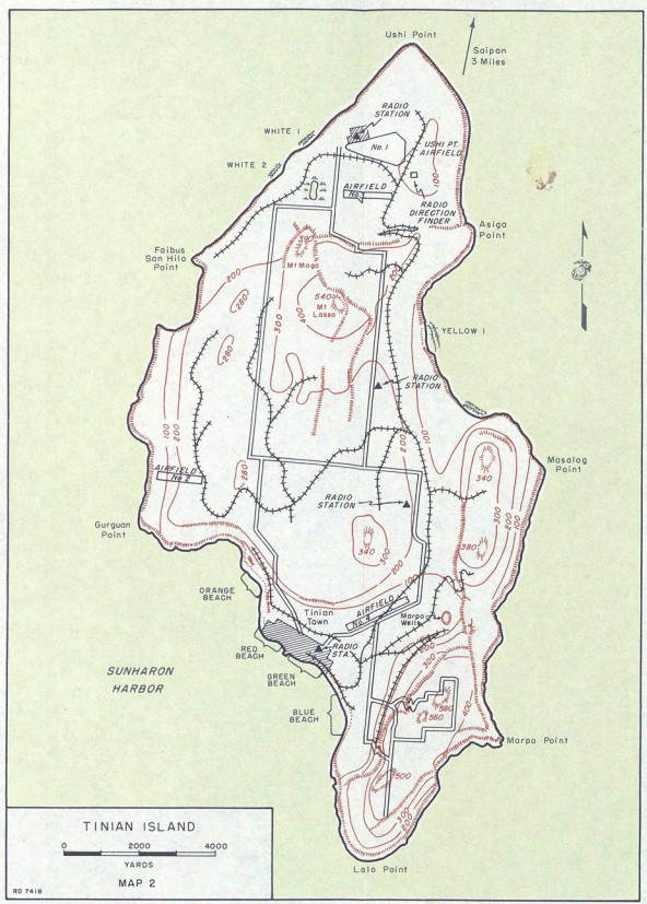 Landing Beaches and Japanese development on Tinian by 1944. Image credit: U.S. Marine Corps