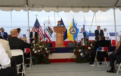 SAN DIEGO – The future USNS John Lewis (T-AO 205), the first ship in the U.S. Navy’s John Lewis-class fleet oiler program, was christened July 17 during a ceremony in San Diego, the Navy said in a release. House Speaker…