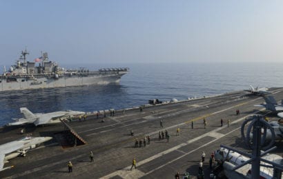 GULF OF ADEN — The Queen Elizabeth (U.K.) and Ronald Reagan carrier strike groups (CSG), alongside the Iwo Jima amphibious ready group (ARG), conducted a large-scale joint interoperability exercise in the Gulf of Aden, July 12, Task Force 50 Public Affairs…