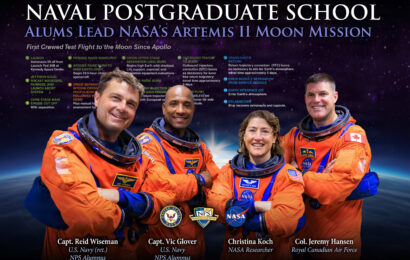 From Dan Linehan, March 24, 2026 Two Naval Postgraduate School (NPS) alumni will lead the historic Artemis II mission on a 10-day space flight around the Moon — mission commander retired U.S. Navy Capt. Reid Wiseman and spacecraft pilot U.S. Navy Capt….