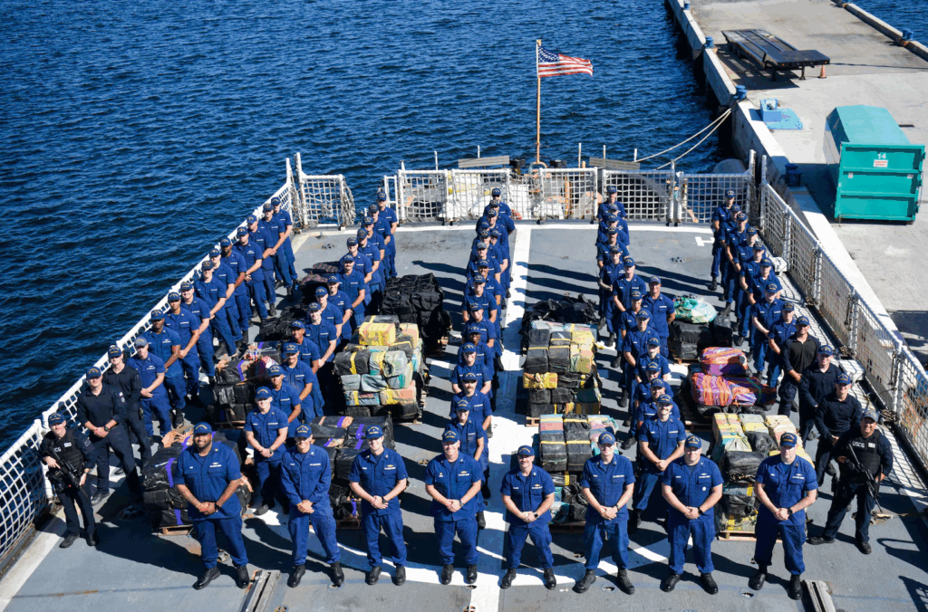 The Coast Guard is the United States’ lead federal maritime law enforcement agency with authority to enforce national and international laws on the high seas and waters within U.S. jurisdiction. 80 percent of all U.S.-bound narcotics seizures occur at sea, underscoring the impact of Coast Guard maritime interdiction efforts.