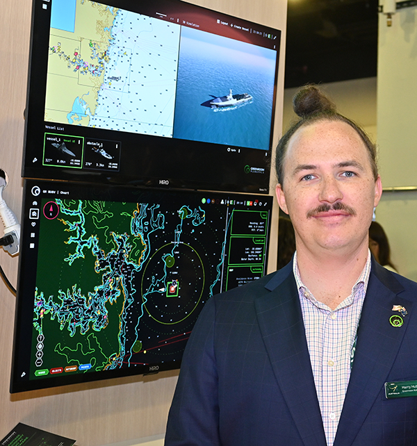 “We are a pure software company,” said Harry Hubbert, chief operating officer for Greenroom Robotics (Booth 1537 in the Australian pavilion), formed in 2017 when its founders met at the Australian Maritime College in Launceston, Tasmania, and bonded over a passion for ocean adventures and maritime robotics (the company’s name is a surfing term referring to the inside of a barrel produced by a wave).