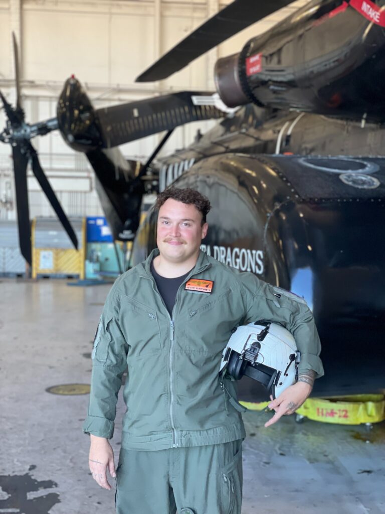 As the Navy phases out this iconic aircraft, Griffin and Humphreys will be the last pilots to master its unique skill set while the last two remaining squadrons – HM-12 and HM-15 – prepare for the sundown of this aircraft type model series. Both men originally set their sights on serving as naval officers but did not initially envision becoming naval aviators.