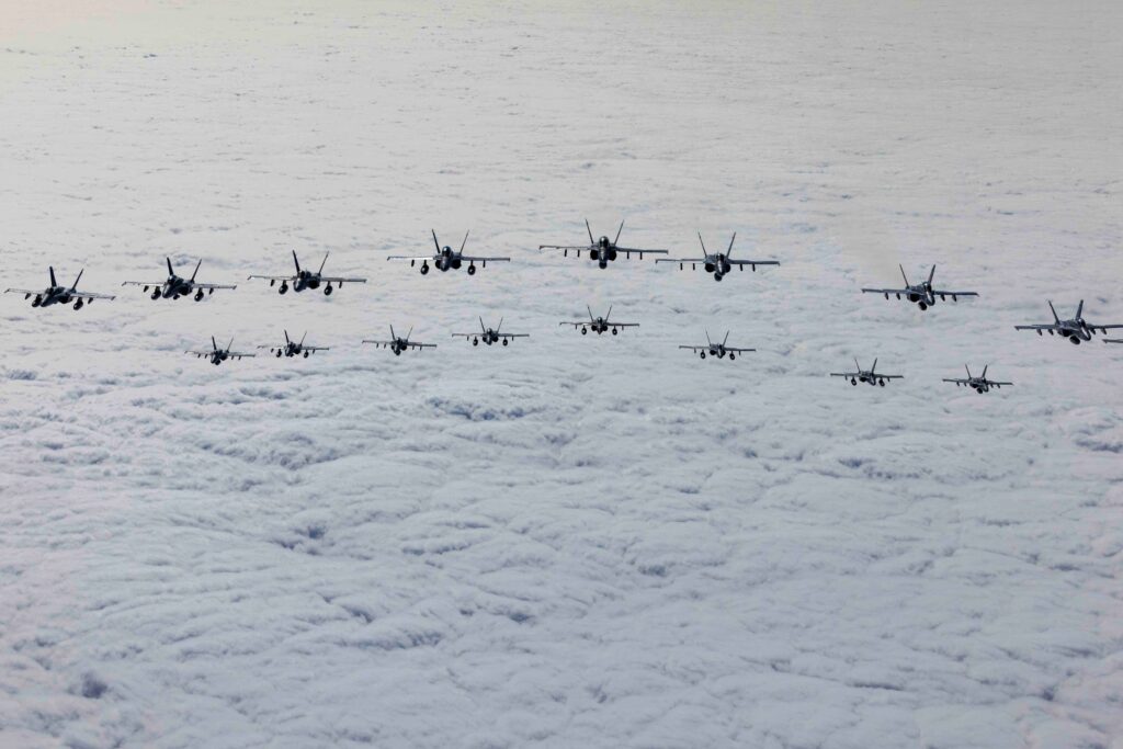The squadron commemorated the event by “flying the barn” – launching 18 aircraft in a single flight. More than 300 Marines, Sailors, veterans, family members, and community supporters then gathered for a sundown ceremony to commemorate the squadron’s history and contributions to Marine Corps readiness.