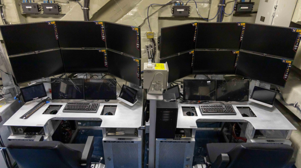 The GCS, developed by the Navy, includes Lockheed Martin’s Skunk Works® Multi Domain Combat System (MDCX™), the power behind the GCS, along with additional supporting equipment and hardware. The hardware installed in the racks and cockpits is the baseline for the production systems currently being fabricated for installation on CVNs 70, 71, and 76 beginning in fiscal year 2025.