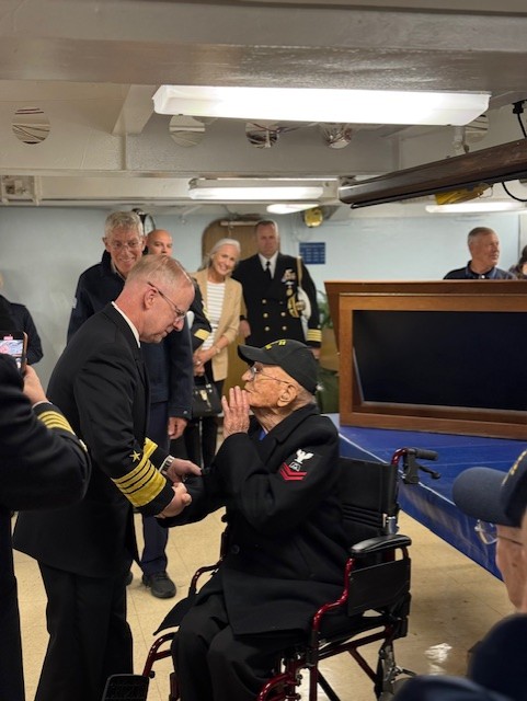 As the oldest Sailor in attendance, 99-year-old Desmond was then presented the first slice, with the second slice presented to the youngest Sailor, just 22 years old. The moment captured the Navy’s enduring legacy honoring those who have served before while also celebrating the newest generation of Navy Sailors who will continue to carry its proud traditions forward.
