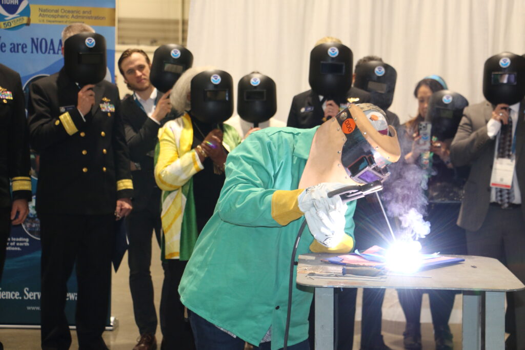 The keel-laying is a centuries-old maritime tradition that formally recognizes the start of a ship’s construction. During today’s ceremony, the initials of the ship’s sponsor, NOAA Corps Rear Adm. Evelyn Fields (ret.), were welded onto a steel plate that will be incorporated into the ship during construction.