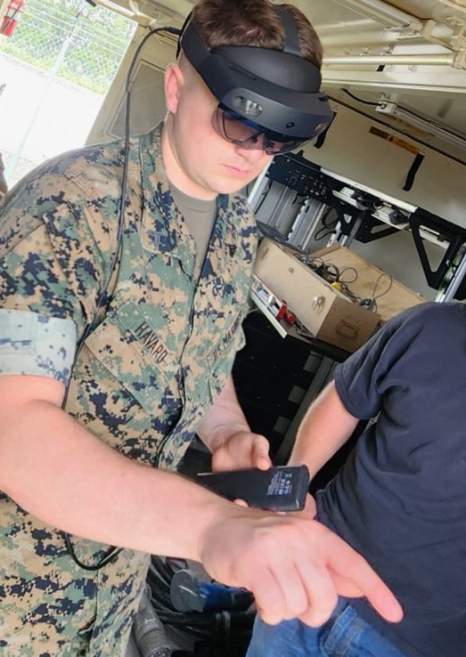 At the beginning of the year, the 2D Maintenance Battalion acquired and trained on the same AR equipment that MDMC had been experimenting with. Cpl. Tyler Havard, S3 Schools Non-Commissioned Officer (NCO), 2D Maintenance Battalion, became proficient in the use of the lens through training earlier this year and was able to link up with MWCS 28 to quickly orient the ground electronic maintenance team on how to use the AR equipment.