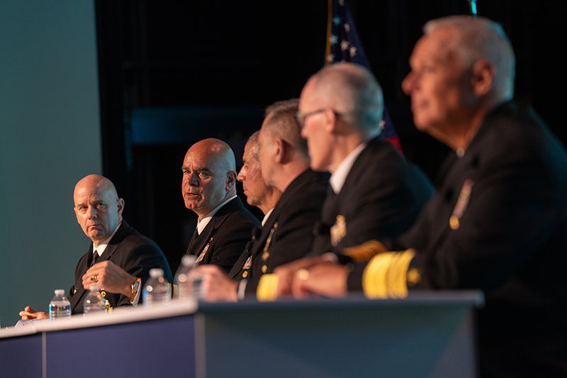 Speaking in an April 7 panel — moderated by Acting Chief of Naval Operations Admiral Jim Kilby — were Vice Admiral Daniel Cheever, commander, Naval Air Forces; Vice Admiral Robert Gaucher, commander, Naval Submarine Forces; Vice Admiral Brendan McLane, commander, Naval Surface Forces; Vice Admiral Carl Chebi, commander, Naval Air Systems Command; and Vice Admiral James Downey, commander, Naval Sea Systems Command.