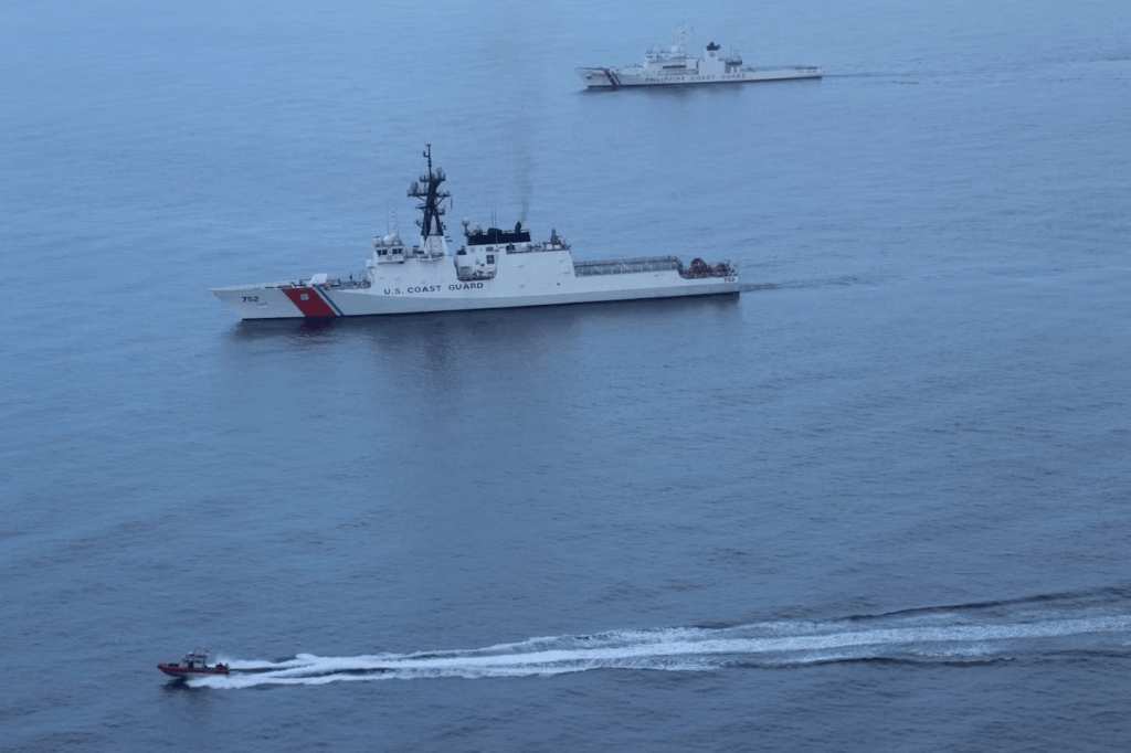 Participating units included the Legend-class cutter USCGC Stratton (WMSL-752) and a P-8A Poseidon maritime patrol and reconnaissance aircraft from the U.S. Navy, as well as the Philippine Navy’s Gregorio del Pilar-class patrol ship BRP Ramon Alcaraz (PS16); Acero-class patrol gunboats BRP Gener Tinangag (PG903) and BRP Domingo Deluana (PG905); an AW109 naval helicopter; the Philippine Air Force’s Super Tucano and Sokol helicopters; and the Philippine Coast Guard’s Teresa Magbanua-class patrol vessel BRP Melchora Aquino (MRRV 9702).