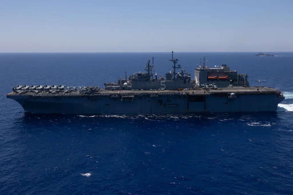 NAPLES, Italy – The Wasp-class amphibious ship USS Bataan (LHD 5) and the Harpers Ferry-class dock landing ship USS Carter Hall (LSD 50) transited Dec. 28, 2023, from the Red Sea to the Eastern Mediterranean Sea and will join the San Antonio-class amphibious transport dock ship USS Mesa Verde (LPD 19). With the embarked 26th Marine Expeditionary Unit (MEU), these ships will re-aggregate as the Amphibious Ready Group (ARG) in the eastern Mediterranean.