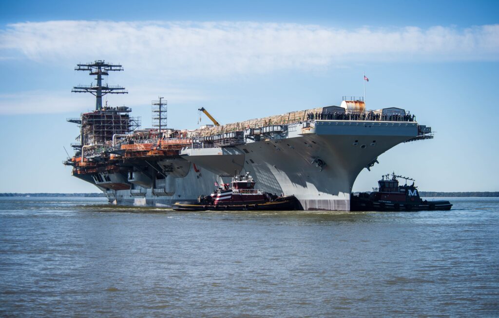 Aircraft carriers enter refueling complex overhauls at the mid-point of their 50-plus-year lifespan, incorporating upgrades to propulsion equipment, infrastructure and electronic systems. After NNS flooded the dry dock with more than 100 million gallons of water, the ship moved to the shipyard’s outfitting berth, where shipyard workers and crew will complete the installation and testing of major components and combat support systems.