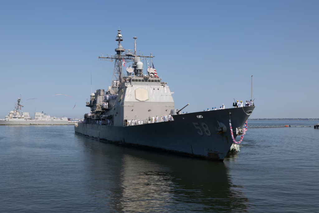 The Ticonderoga-class guided-missile cruiser USS Philippine Sea (CG 58) returned to Naval Station Norfolk after a nine-month deployment as part of the Dwight D. Eisenhower Carrier Strike Group (IKECSG), July 14, 2024.